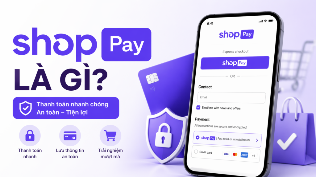 Shop Pay là một tiện ích thanh toán nhanh trên cửa hàng Shopify. Nó giúp cho khách hàng thanh toán cho bạn một cách nhanh chóng mà không phải chuyển hướng đến một website khác.